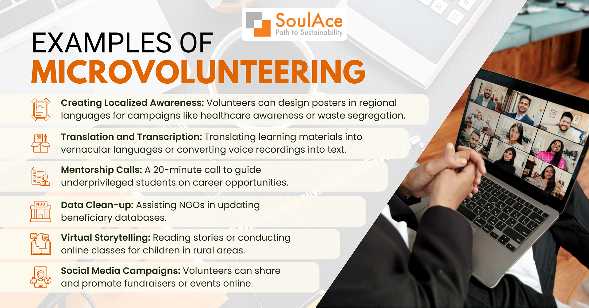 At SoulAce, micro-volunteering is integrated into employee engagement and CSR programs through our Volunteer Management System (VMS). Employees take on bite-sized, high-impact tasks remotely or during work breaks. From virtual storytelling to mentorship calls, these small steps create large-scale community transformation.